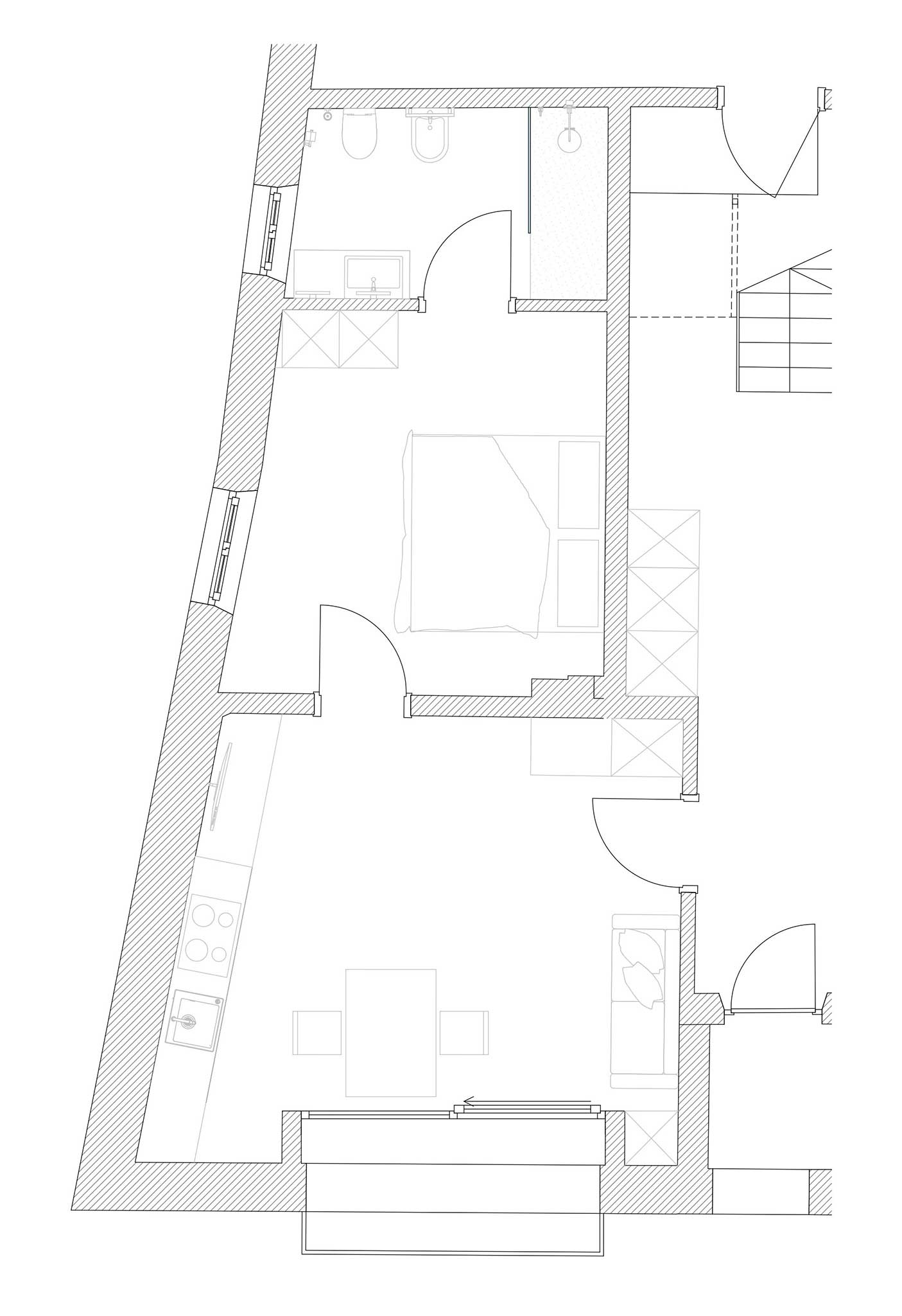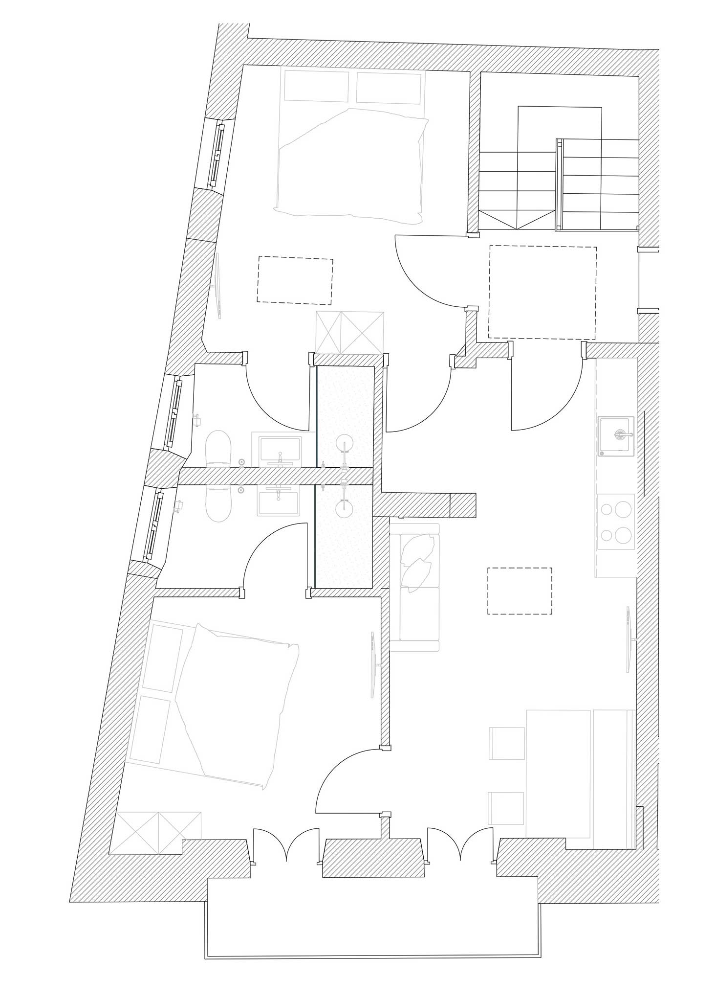 Die Wohnung kann mit einem angrenzenden Doppelzimmer mit Badezimmer zu einer 1 - 5 Personen Wohnung erweitert werden. Somit können Sie die Wohnung für 1-3 oder für 1-5 Personen mieten.
